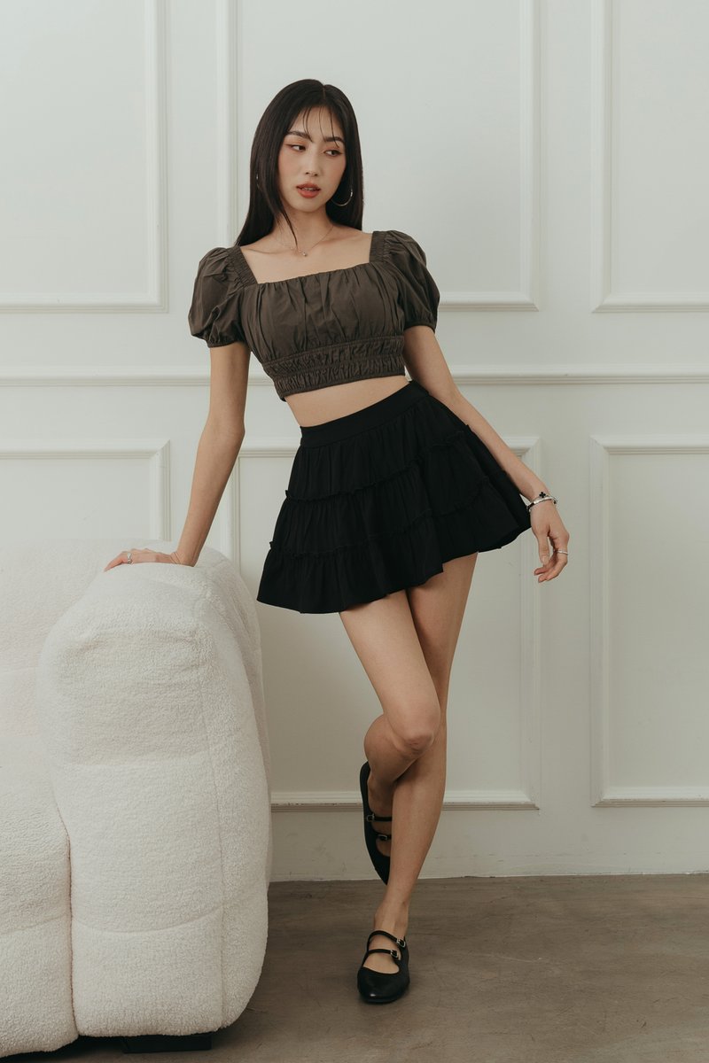 PHEBY PLEATED FLARE PADDED TOP (BLACK) PHEBY PLEATED FLARE PADDED TOP (BLACK)