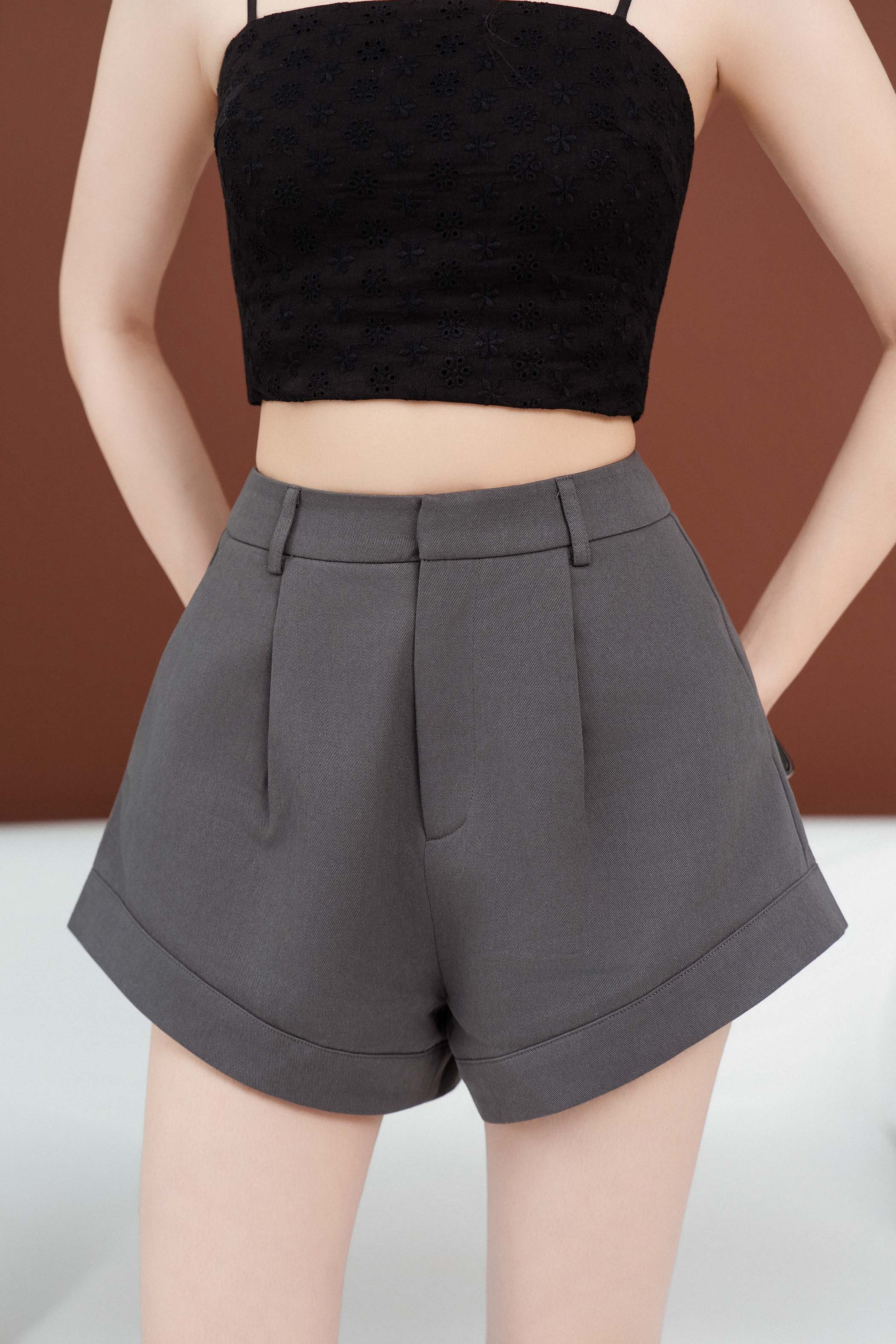 CHARLIE CURVED HEM SHORTS (DARK GREY)