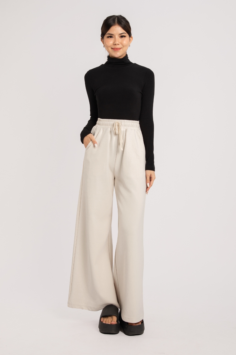 - High-waisted wide leg fit