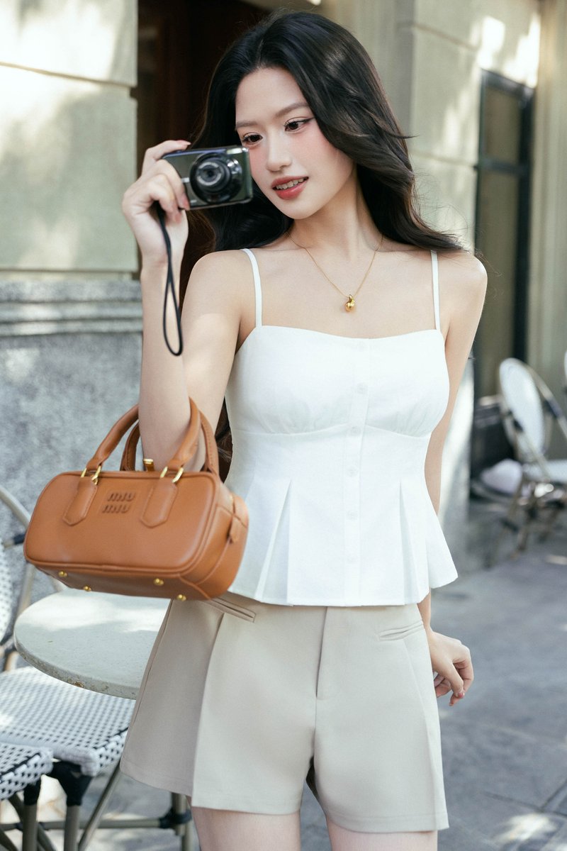 - Pleated details at the front