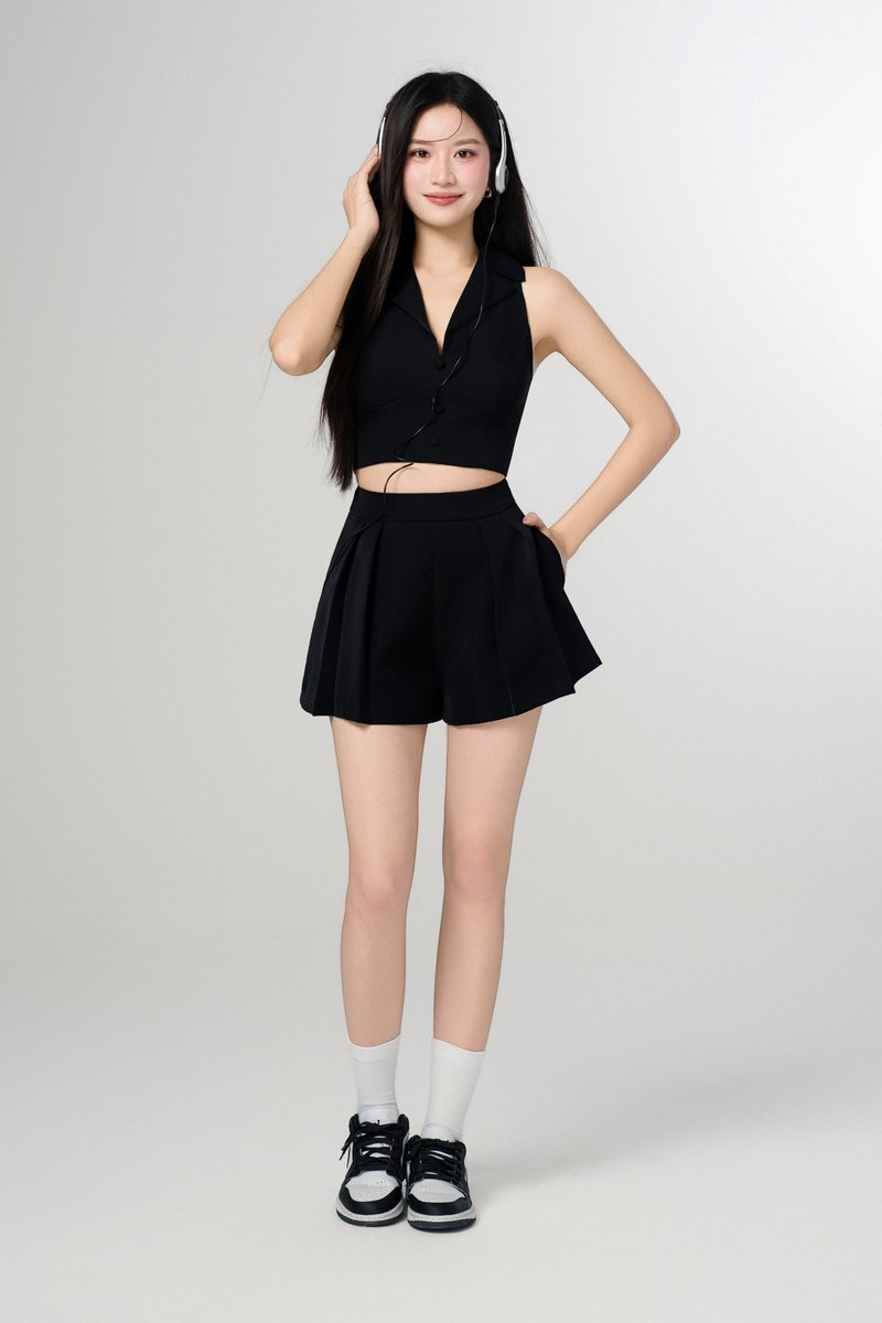 SOODA SIDE PLEATED SHORTS (BLACK)