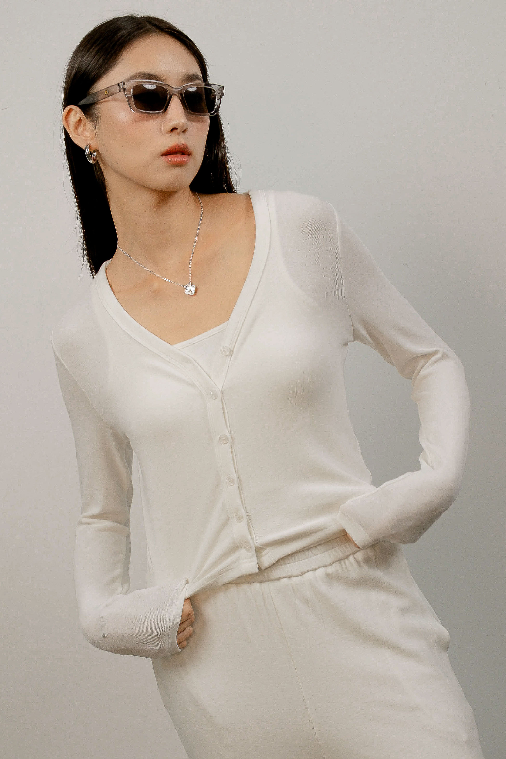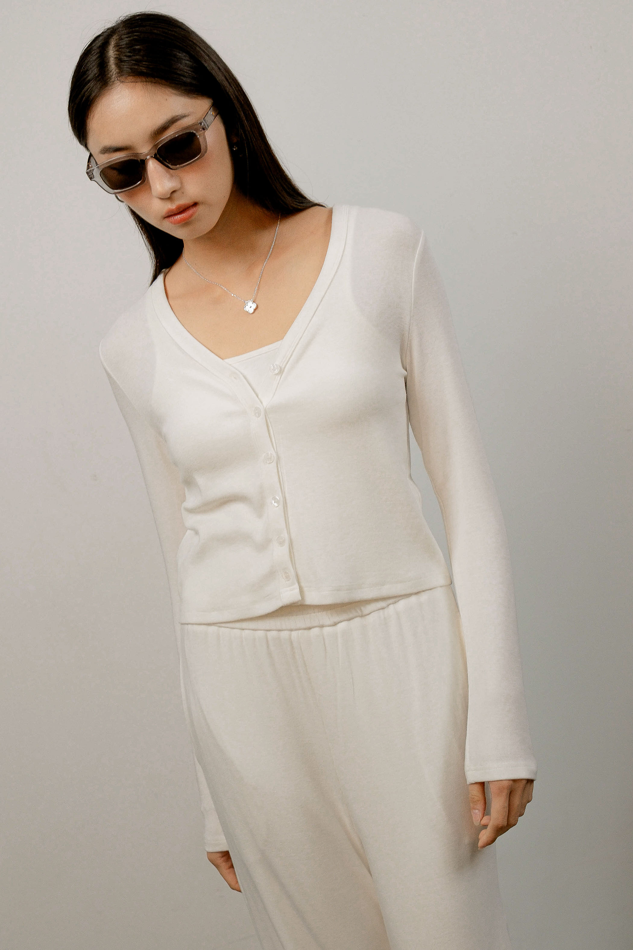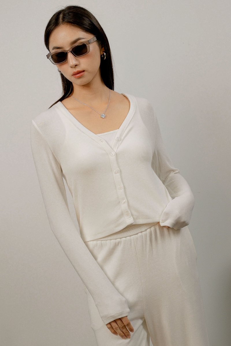 TRANSIT BUTTON CARDIGAN (WHITE)