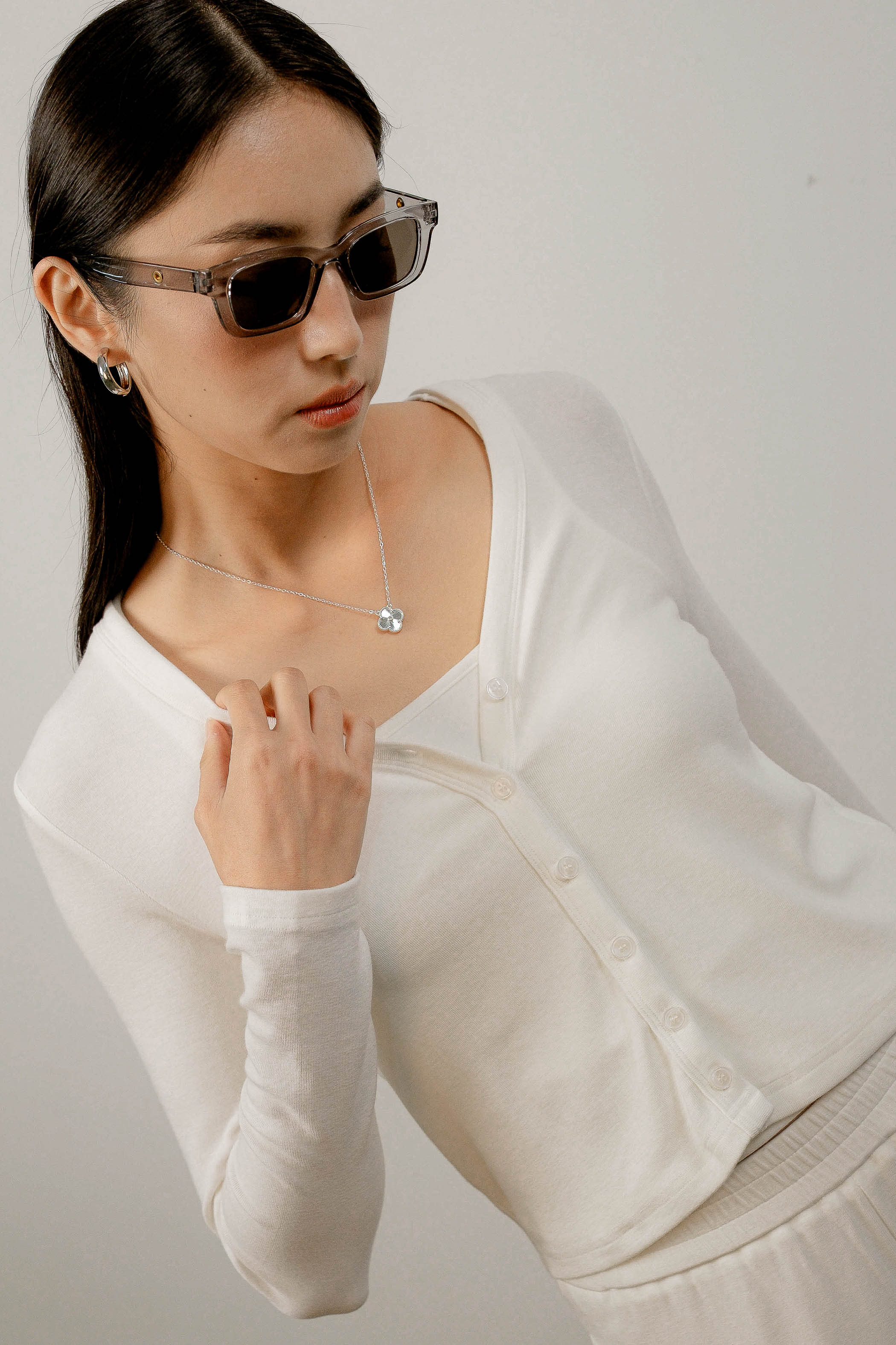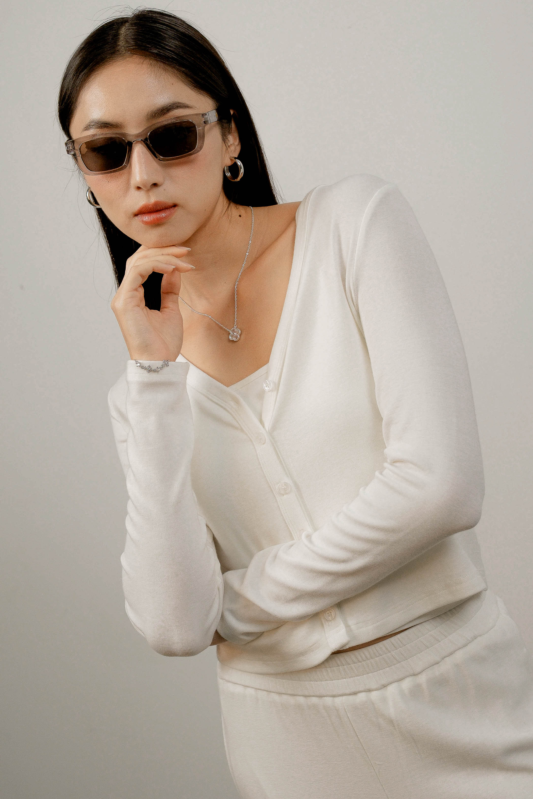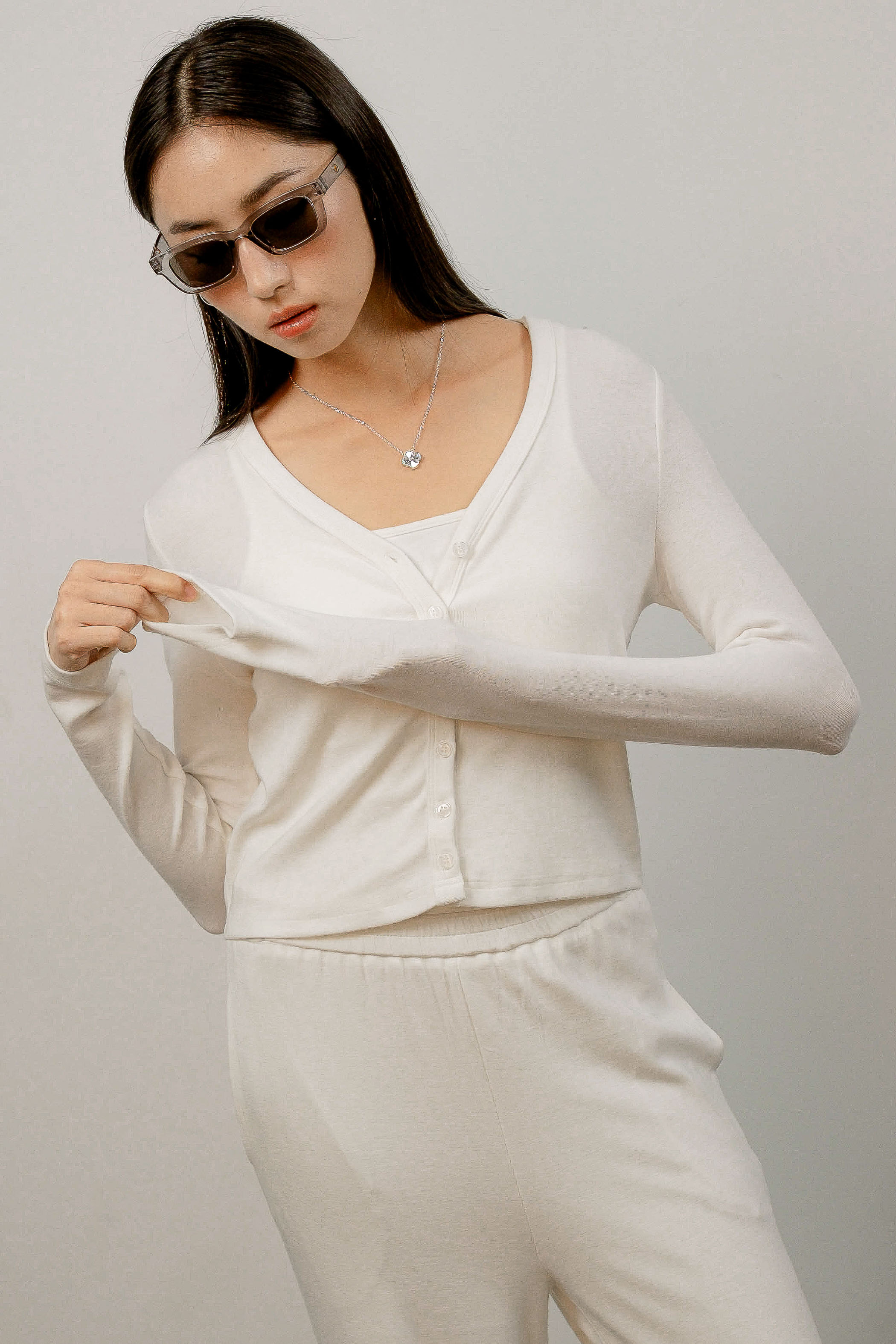 TRANSIT BUTTON CARDIGAN (WHITE)