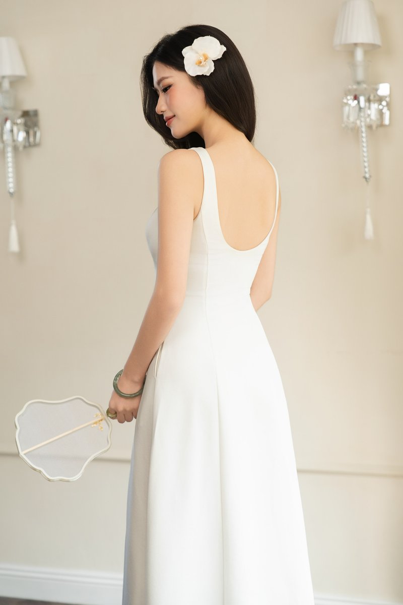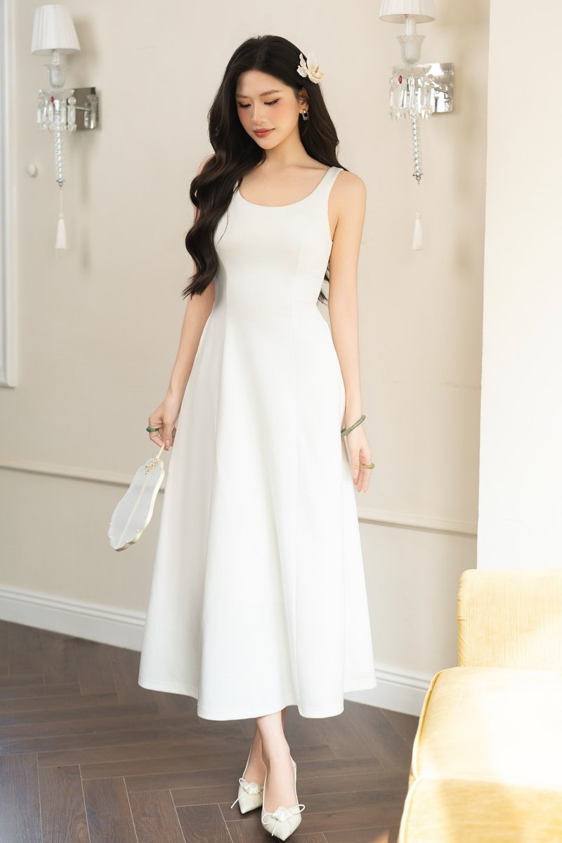 CARYN CINCHED PADDED DRESS (WHITE)