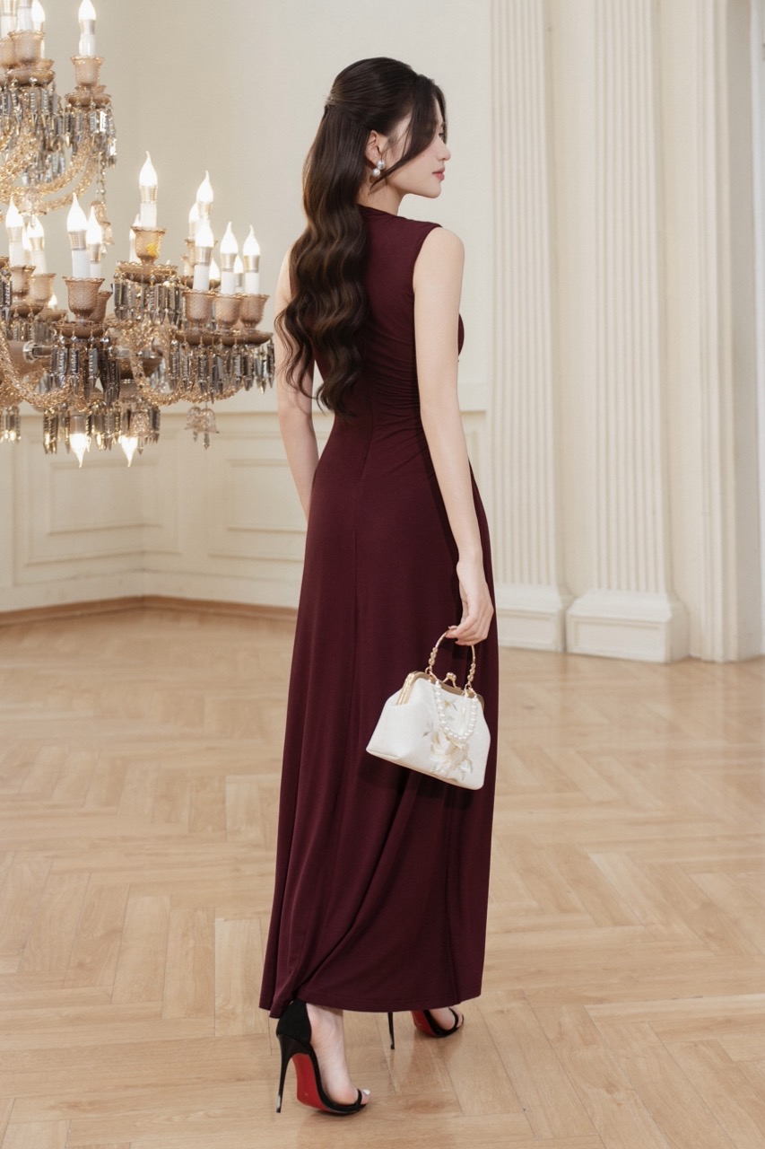REGINA RUCHED MAXI DRESS (DARK RED)