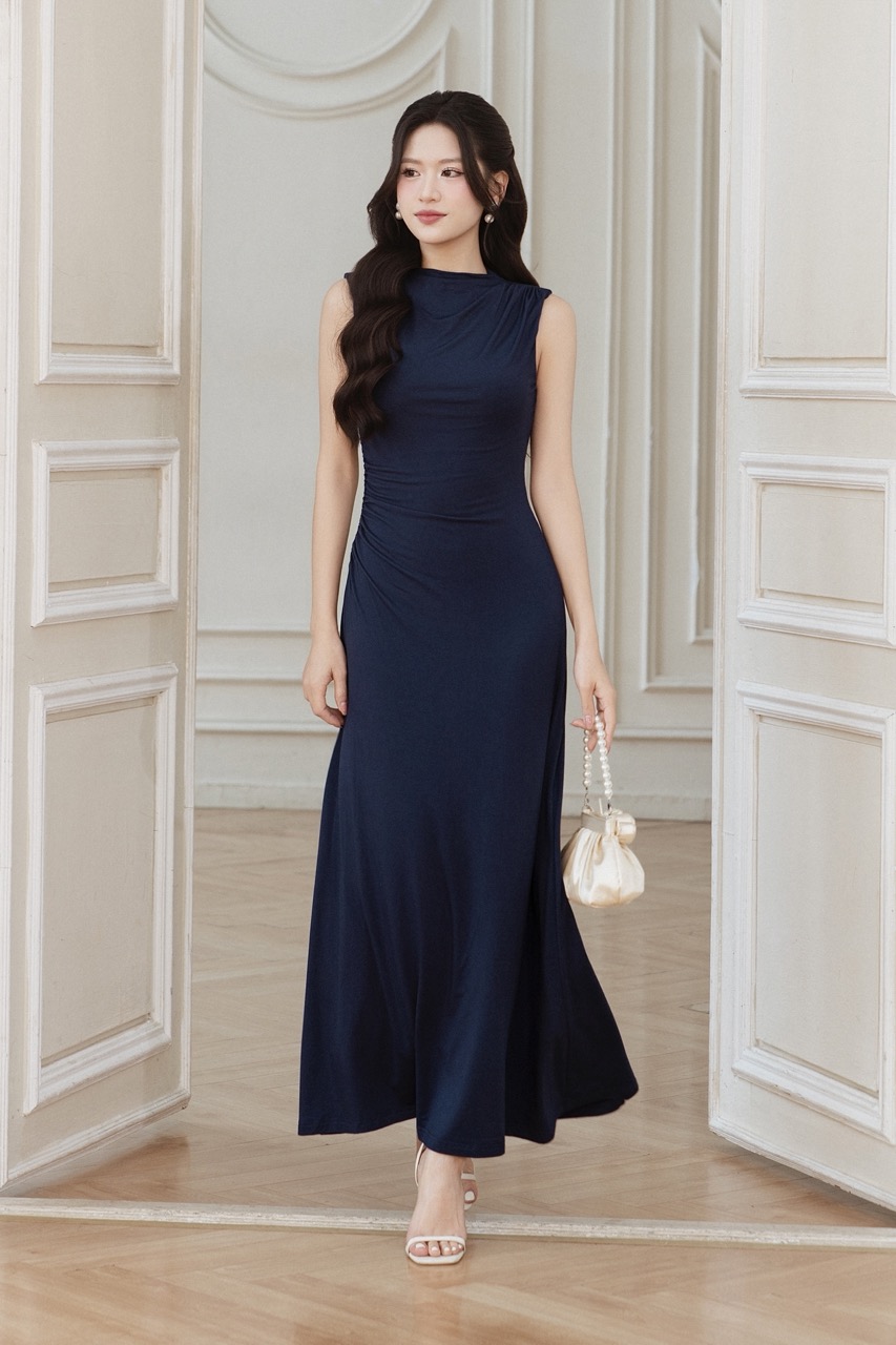 REGINA RUCHED MAXI DRESS (NAVY)