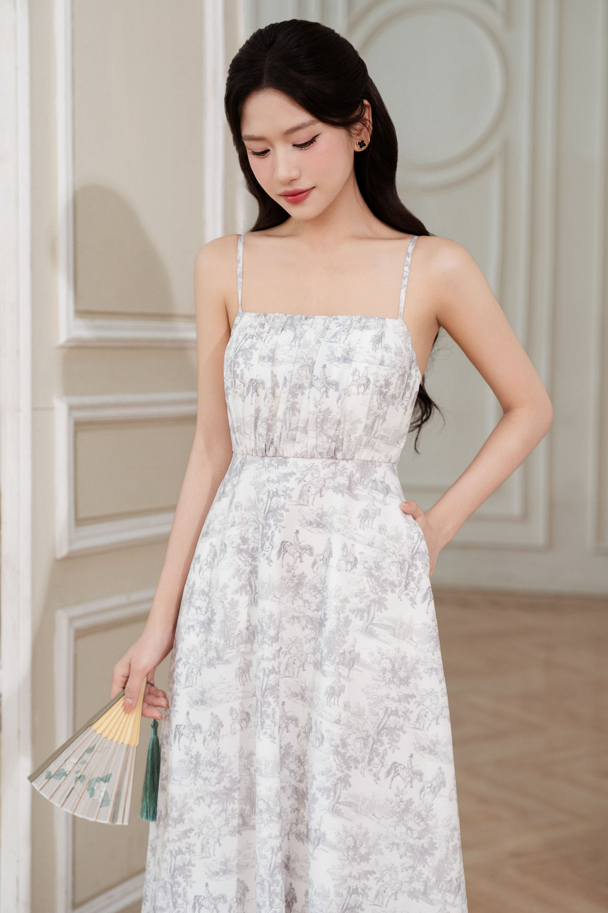 - Features a pleated design at the front