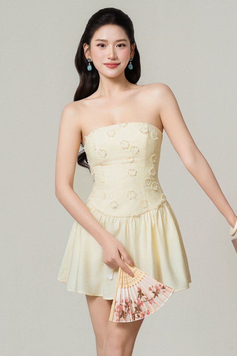 FLIR FLORAL MOTIF DRESS (YELLOW)