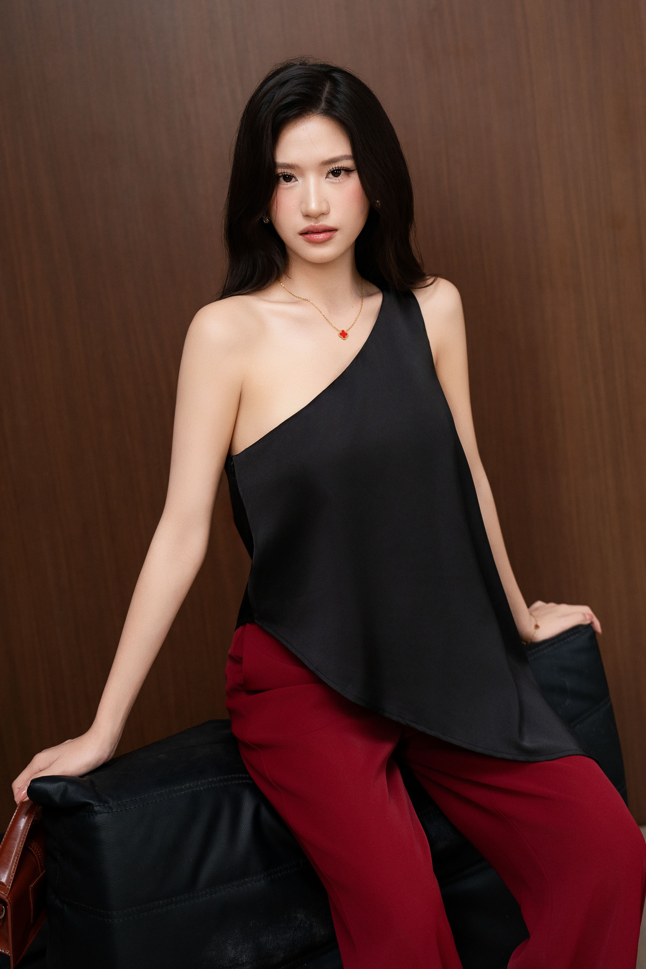 ASYMMETRICAL TOGA PADDED TOP (BLACK)