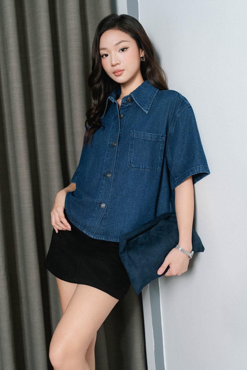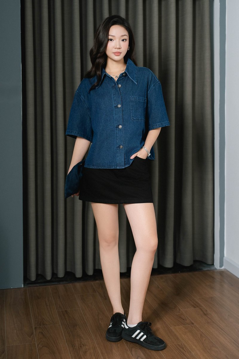 Not lined. Not Sheer. Non Stretch. Made of Denim material.