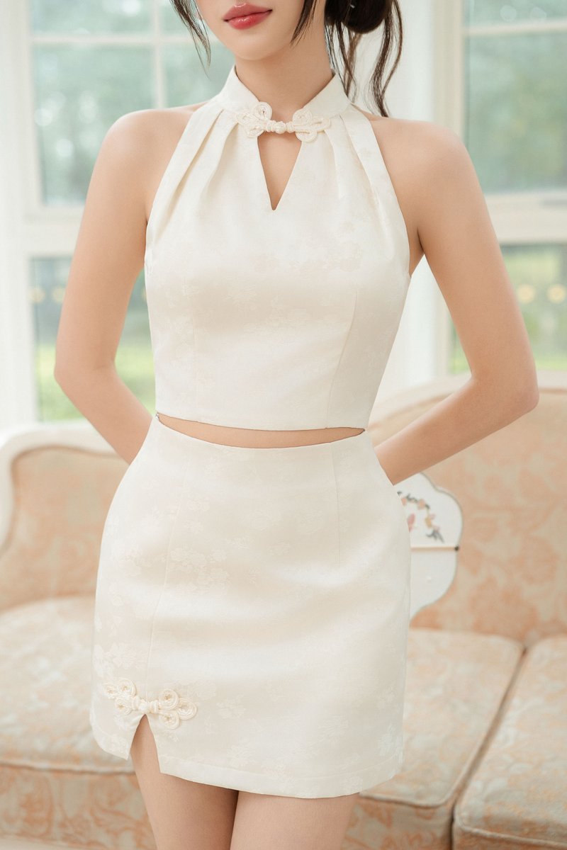 BUTTERFLY PADDED QIPAO TOP (IVORY)