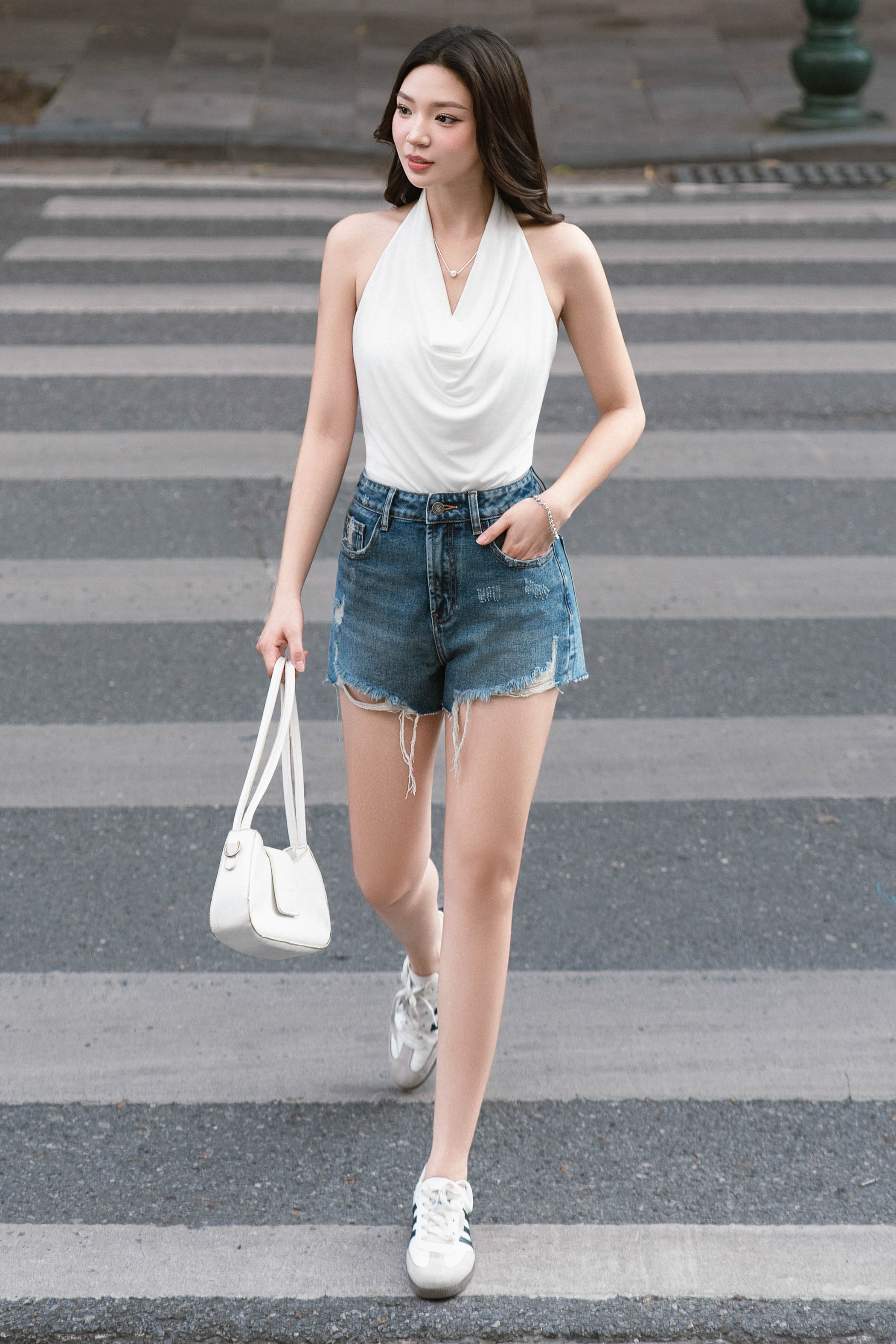 CARBY COWL HALTER PADDED TOP (WHITE)