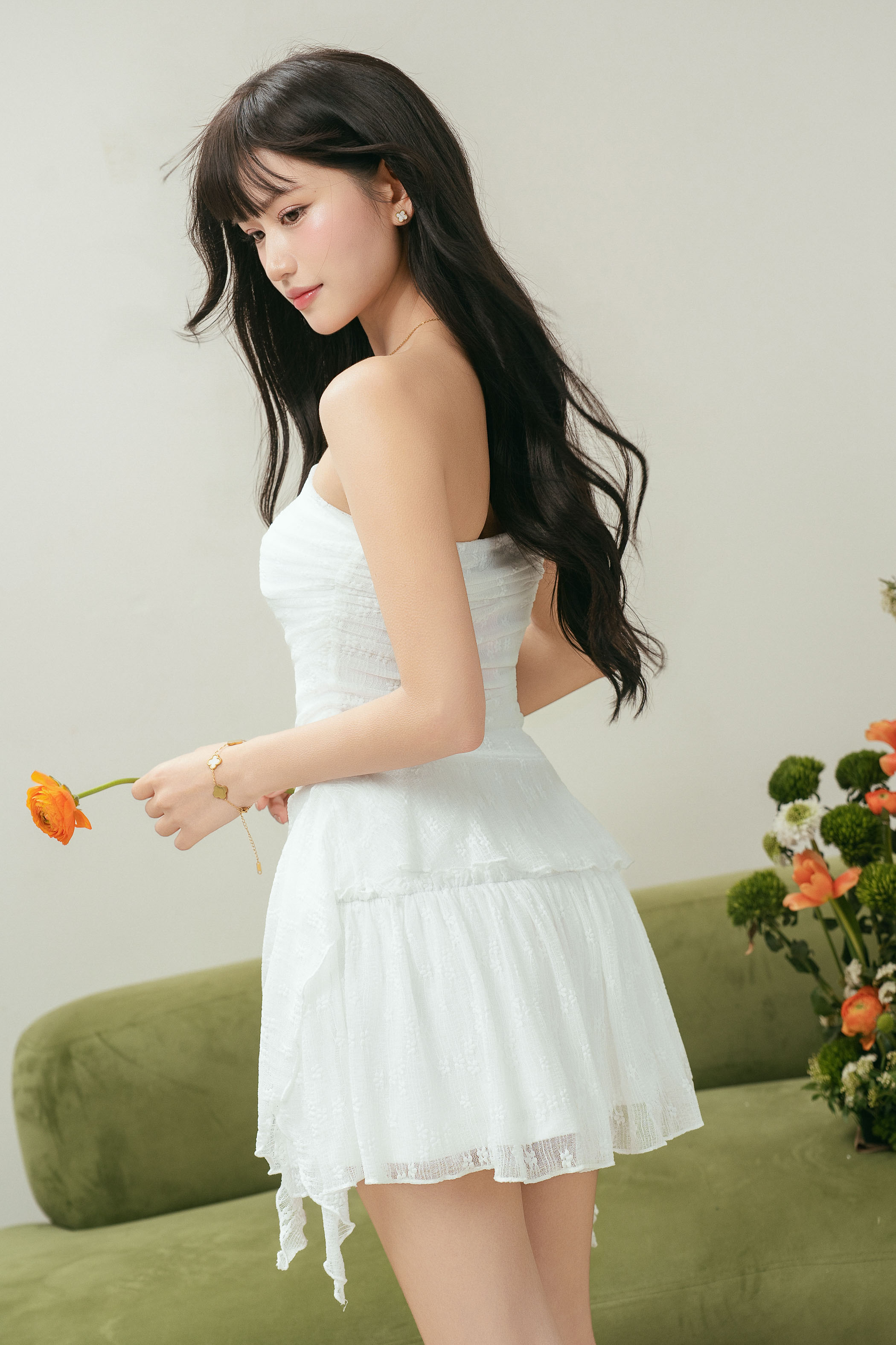 - Ruffle detailing at the sides