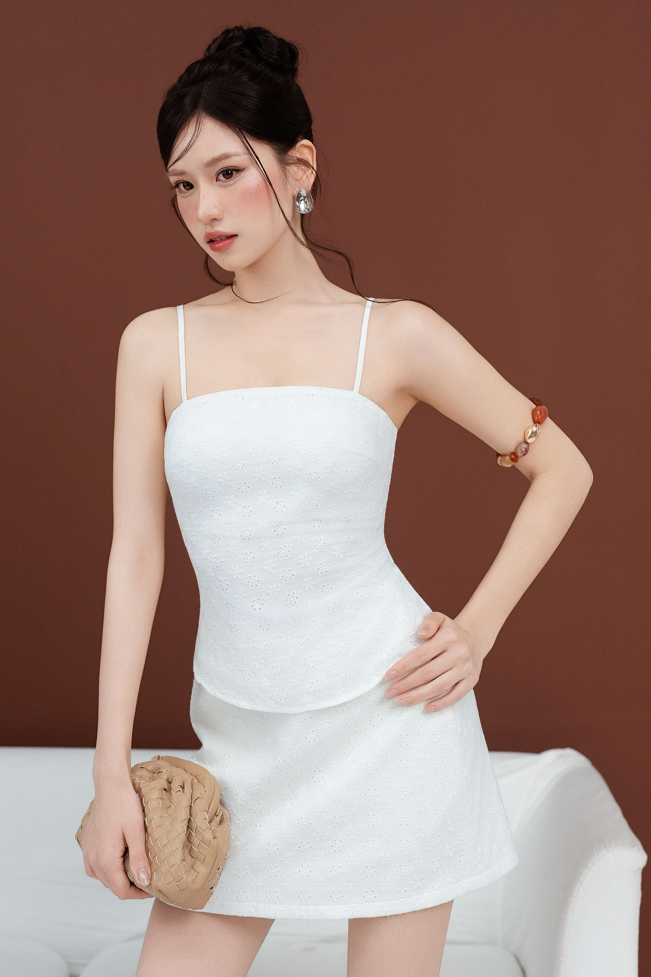 EVA EYELET PADDED TOP (WHITE)
