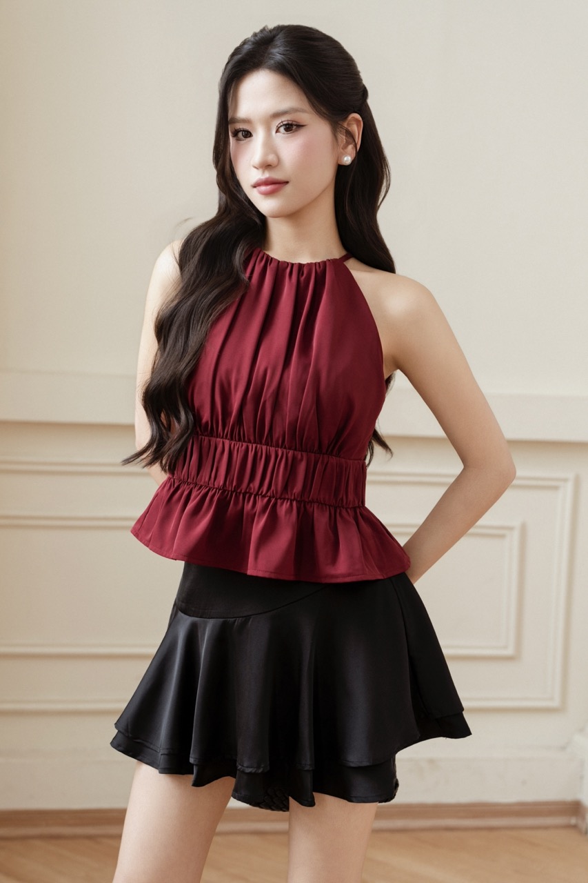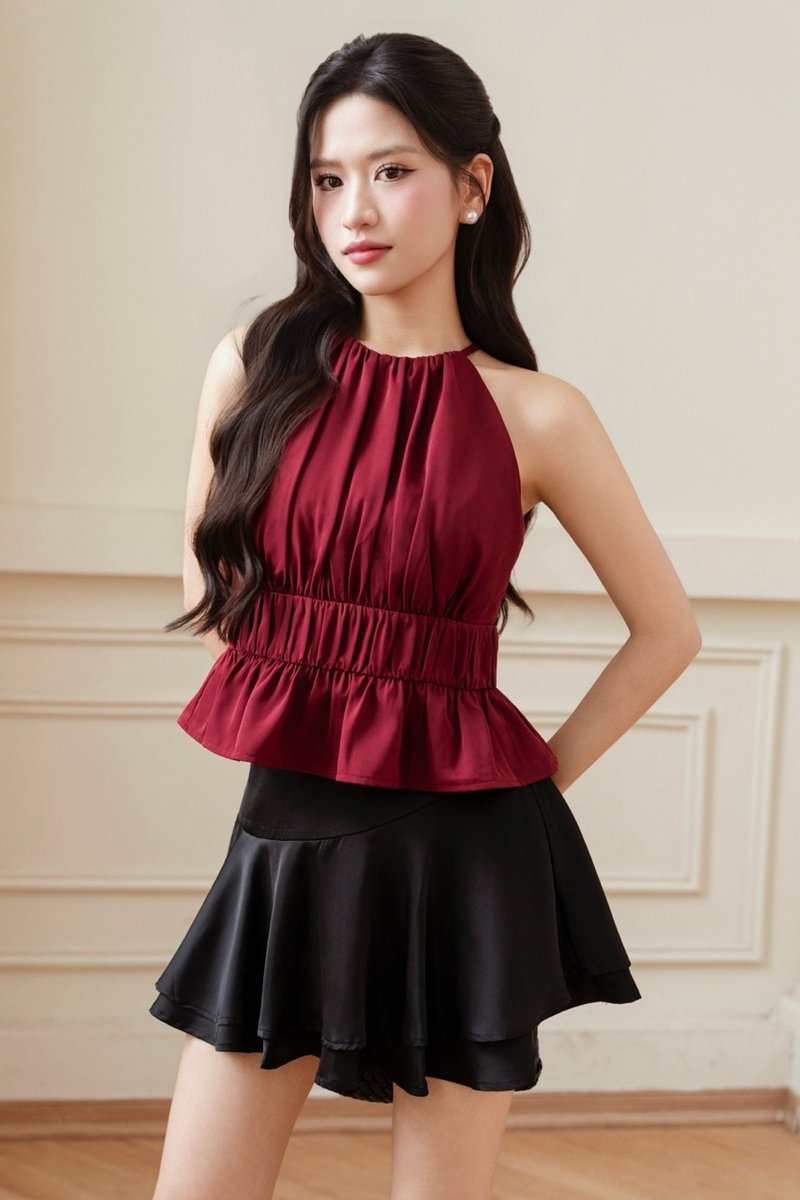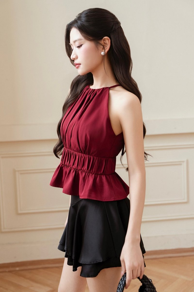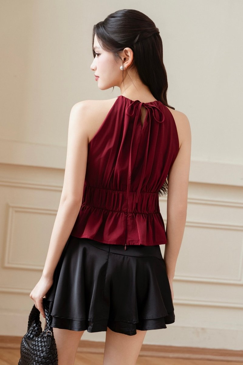 HERA HALTER PADDED TOP (DARK RED)