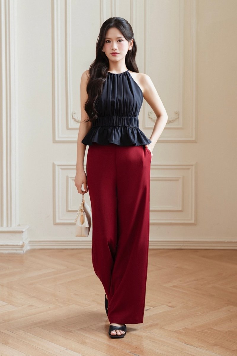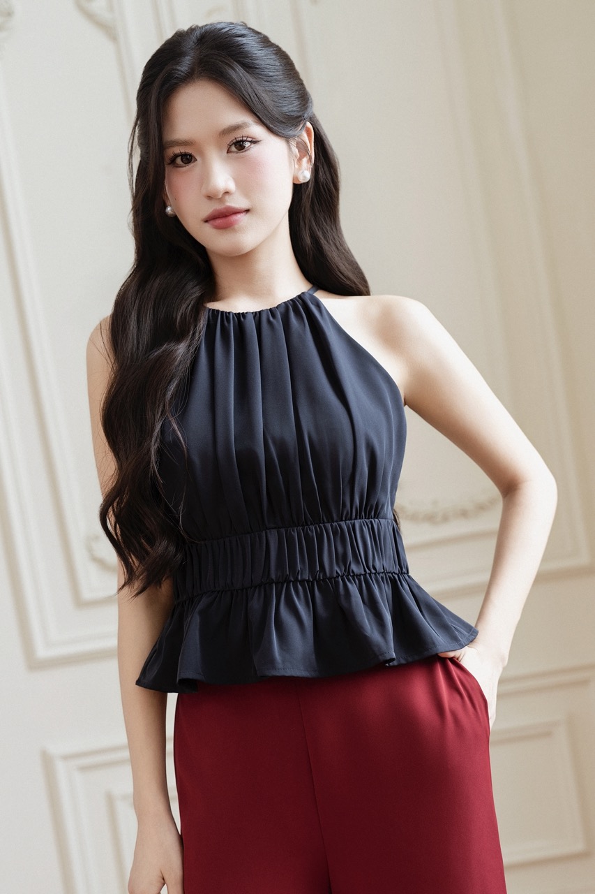 - Halter neckline