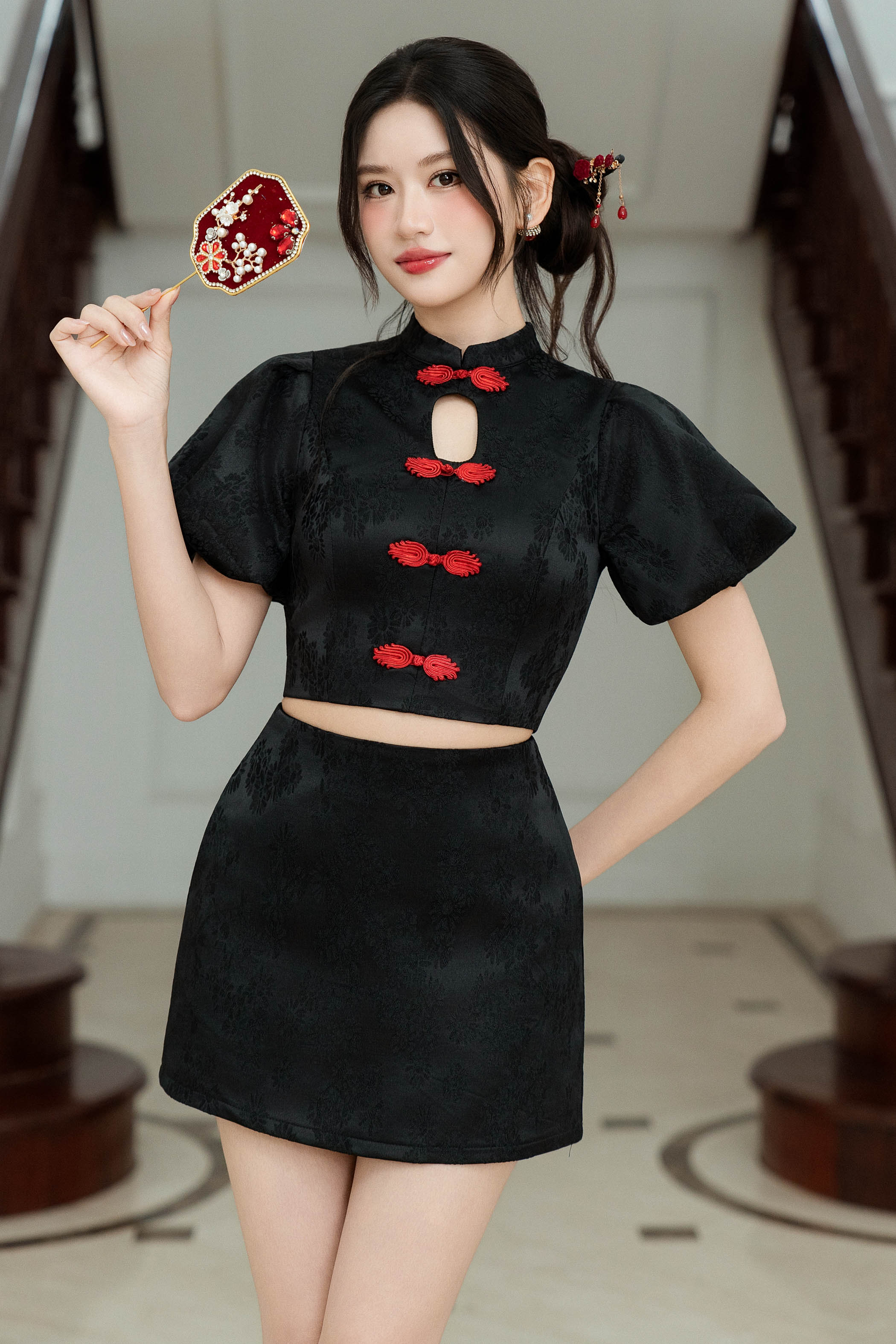 KEQI KEYHOLE QIPAO TOP (BLACK)