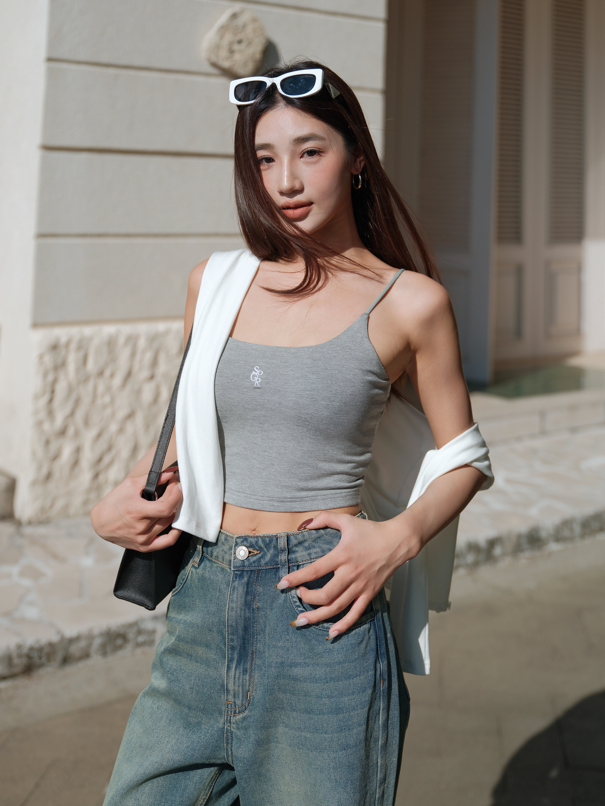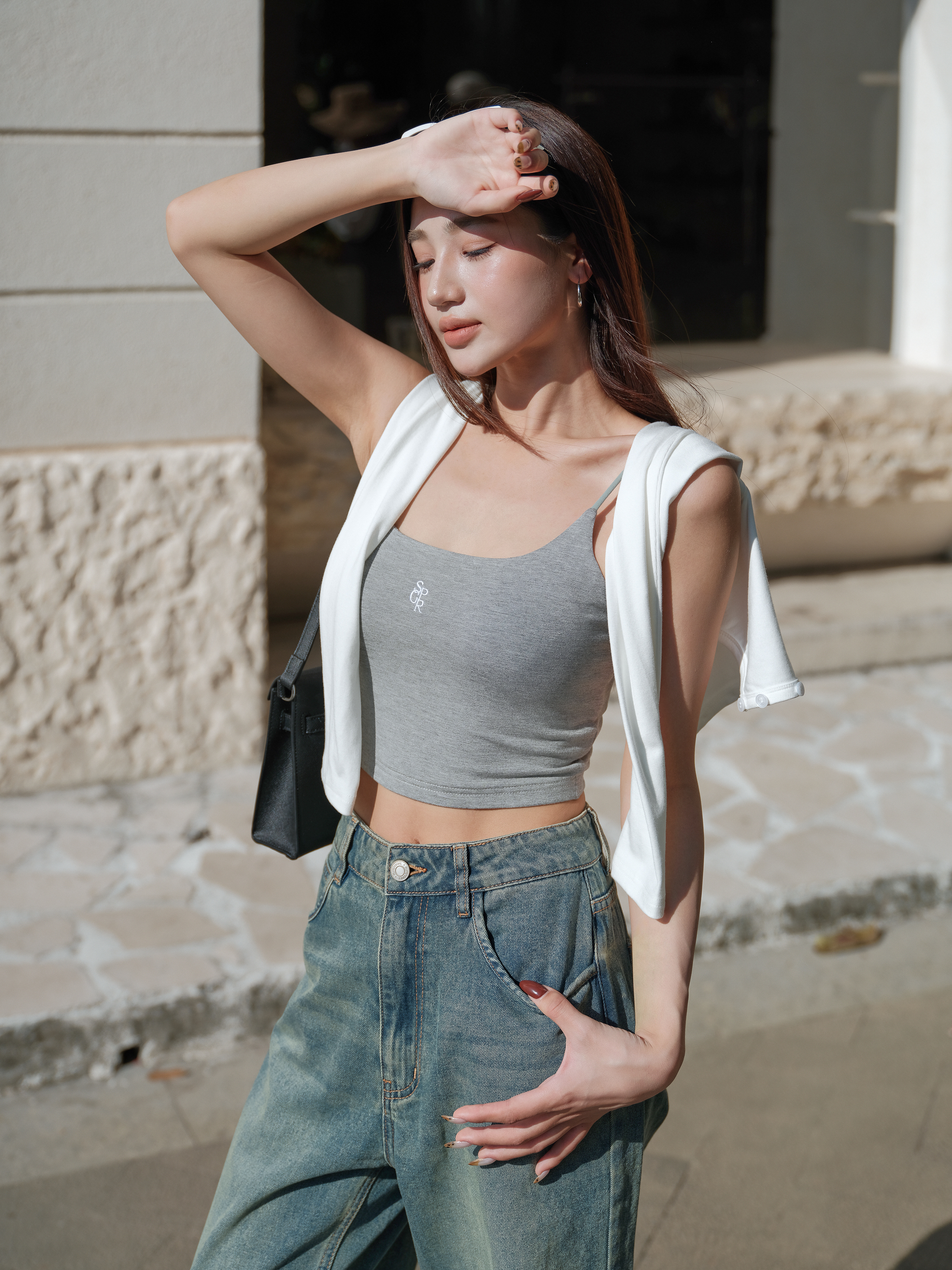 LOGO WINNIE V2 PADDED TOP (HEATHER GREY)