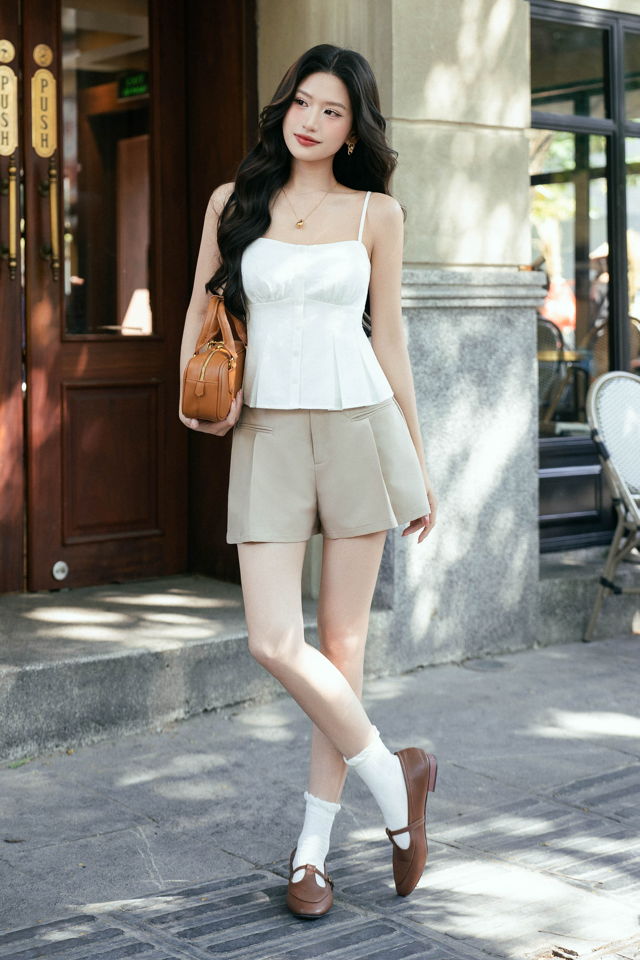 PHEBY PLEATED FLARE PADDED TOP (WHITE)