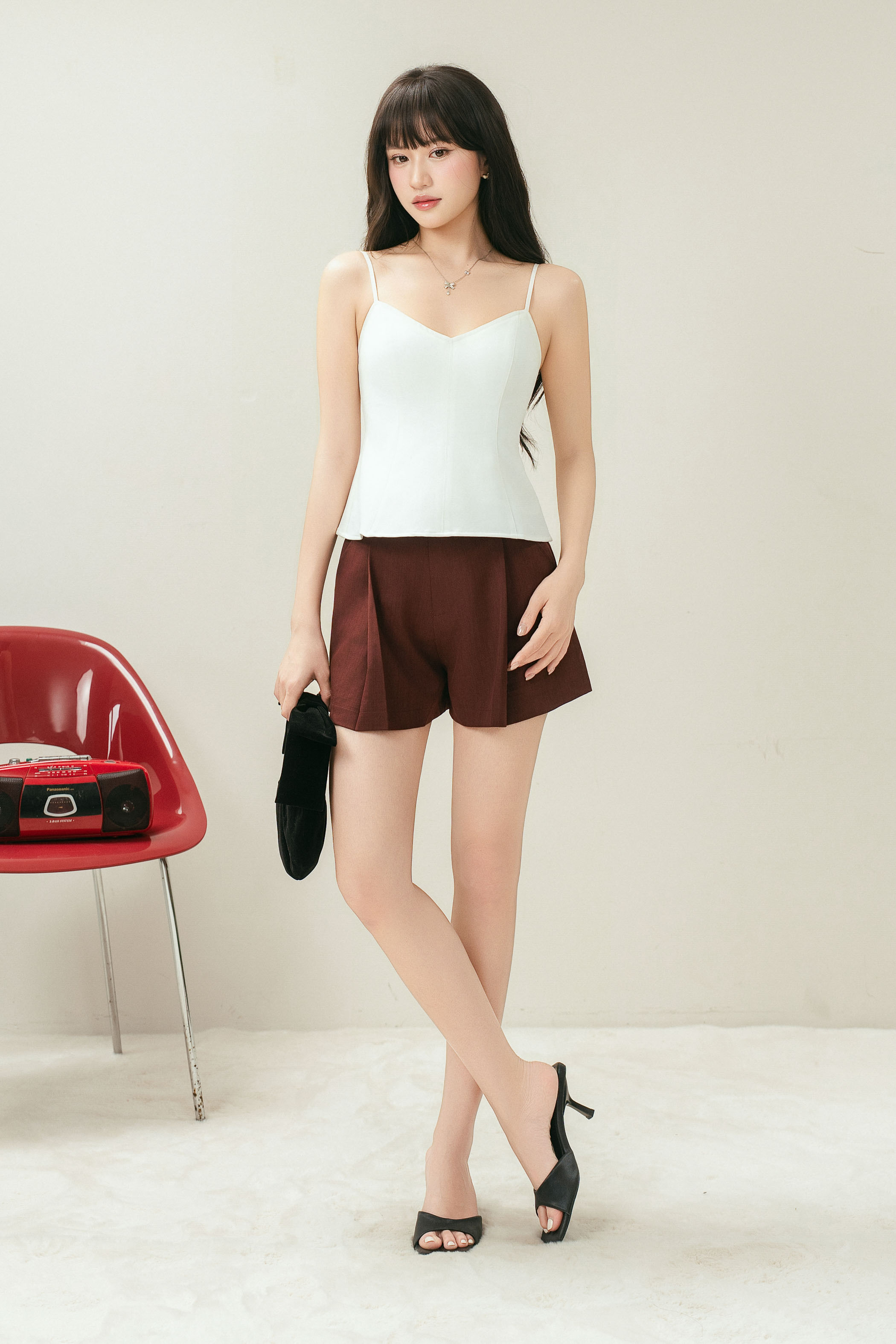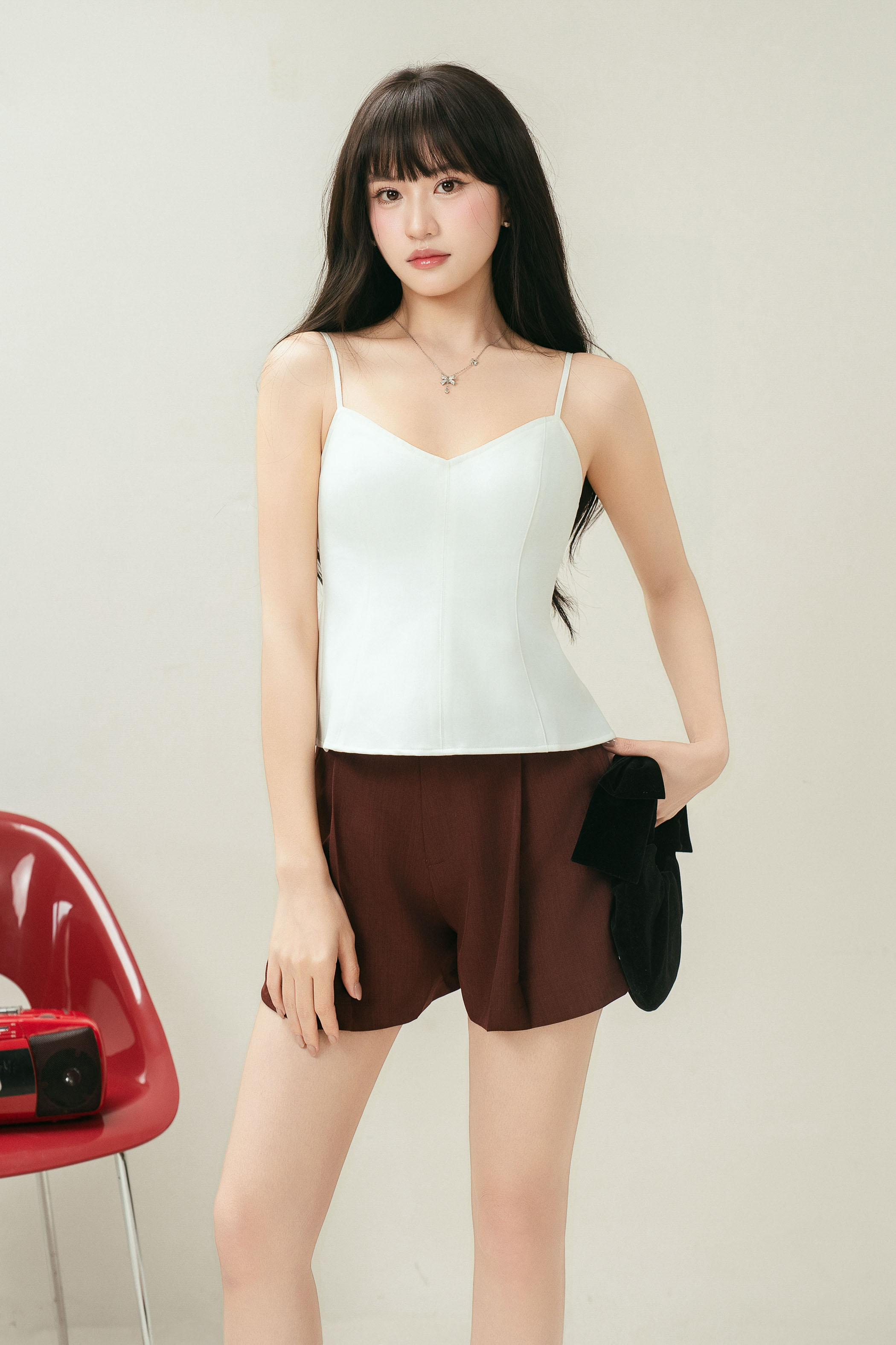 - Slight V-neckline