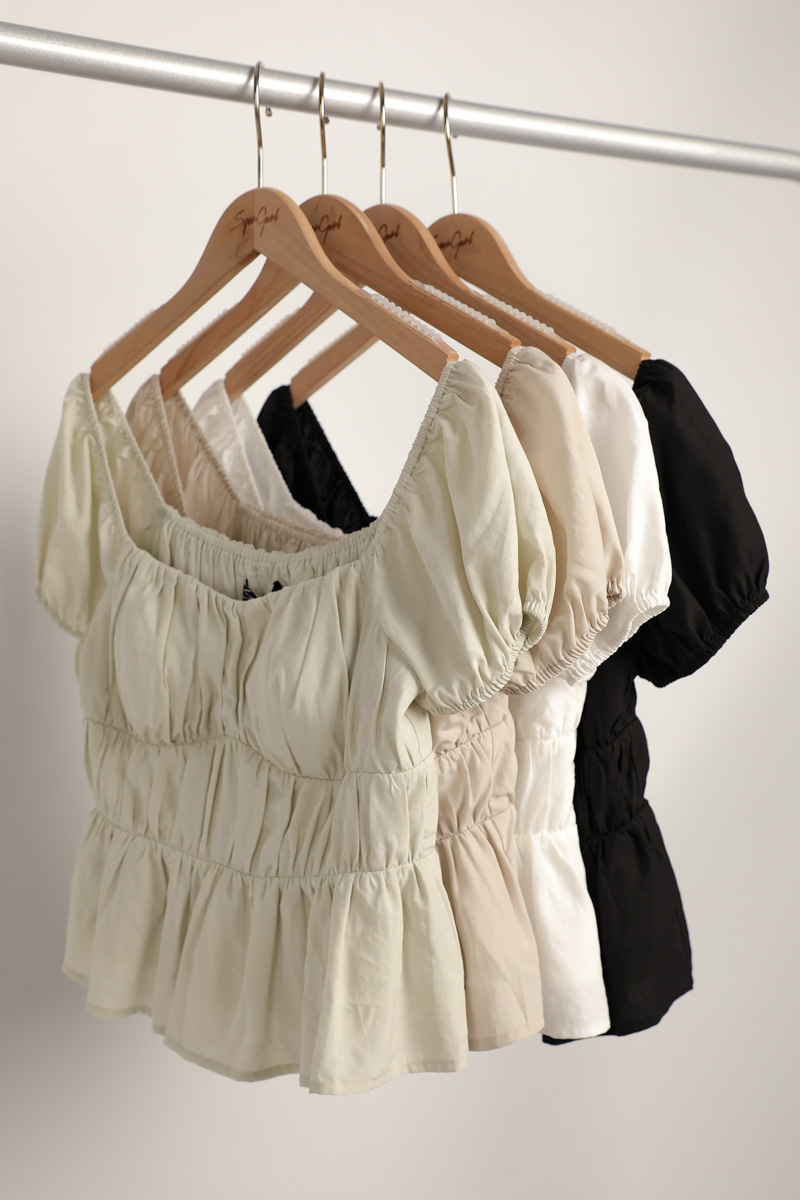 SERA SLEEVE PADDED BABYDOLL TOP (BLACK)
