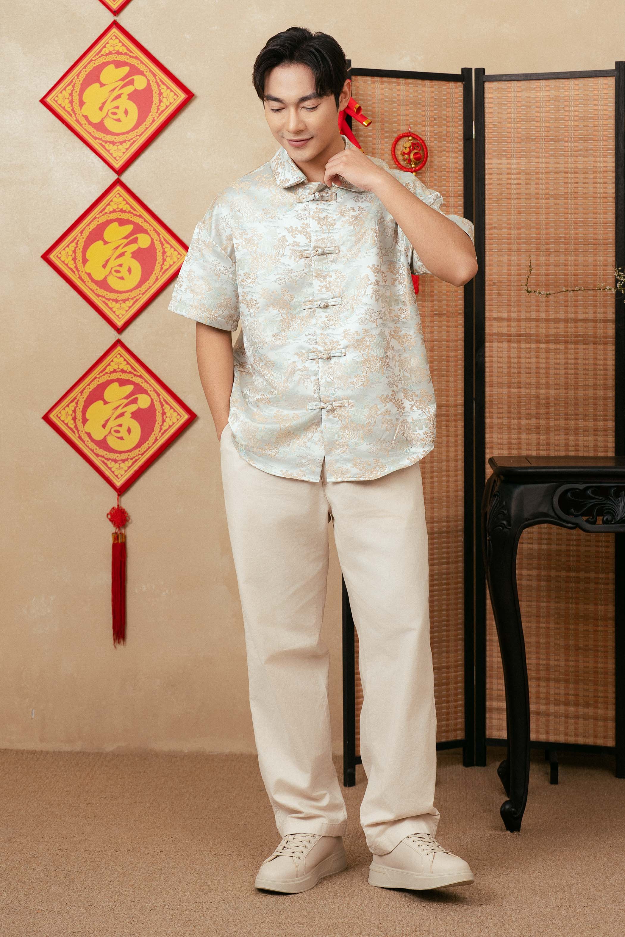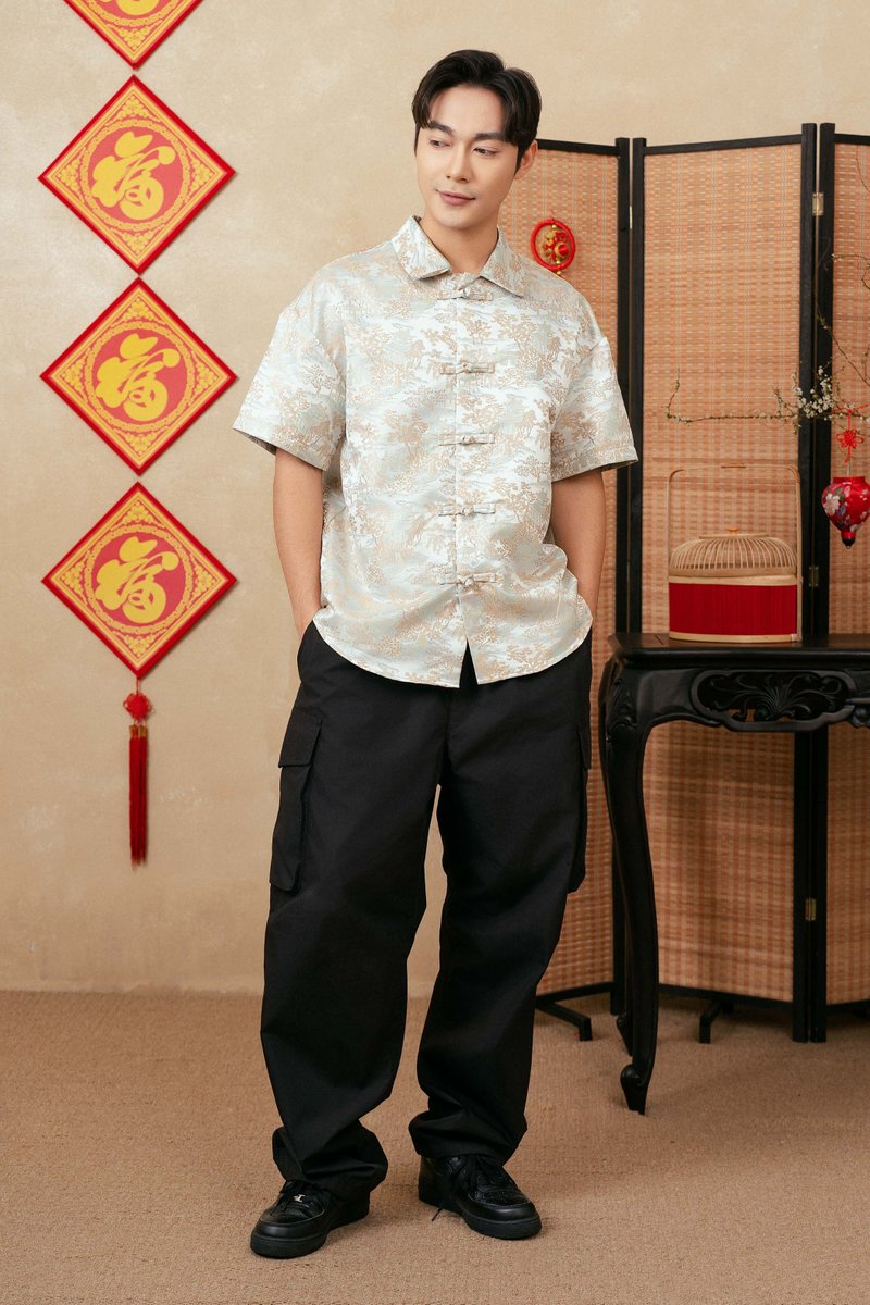 Male Model N stands at 180cm tall and wears size L for tops and bottoms.
