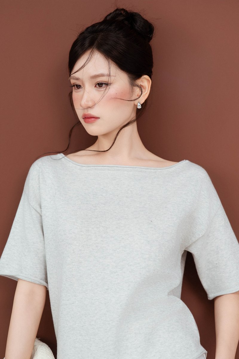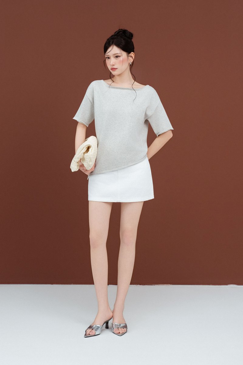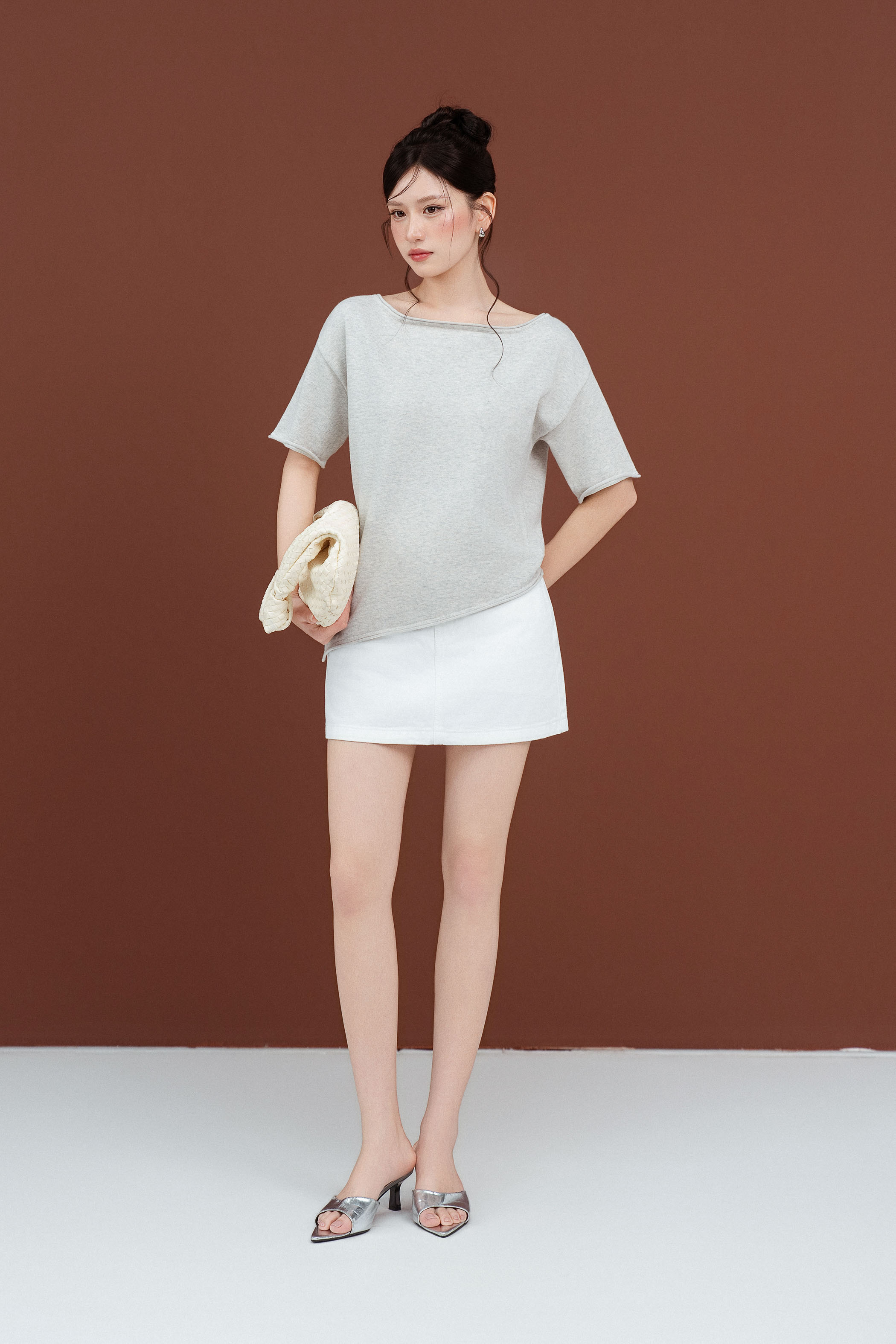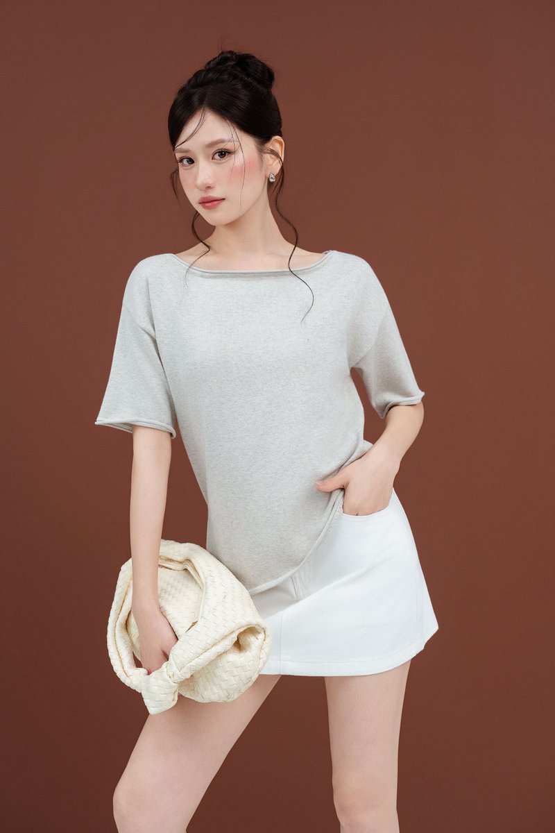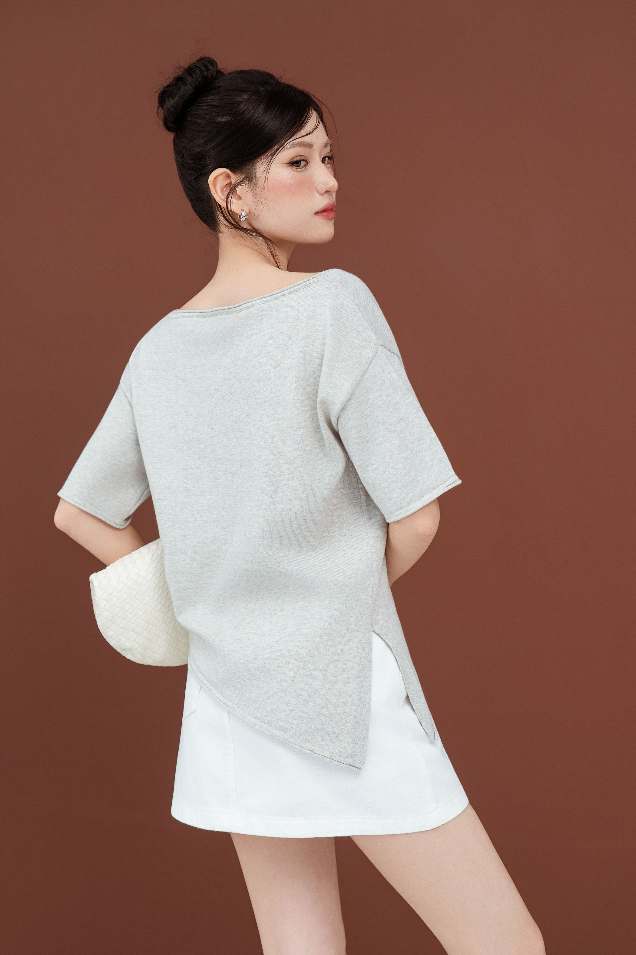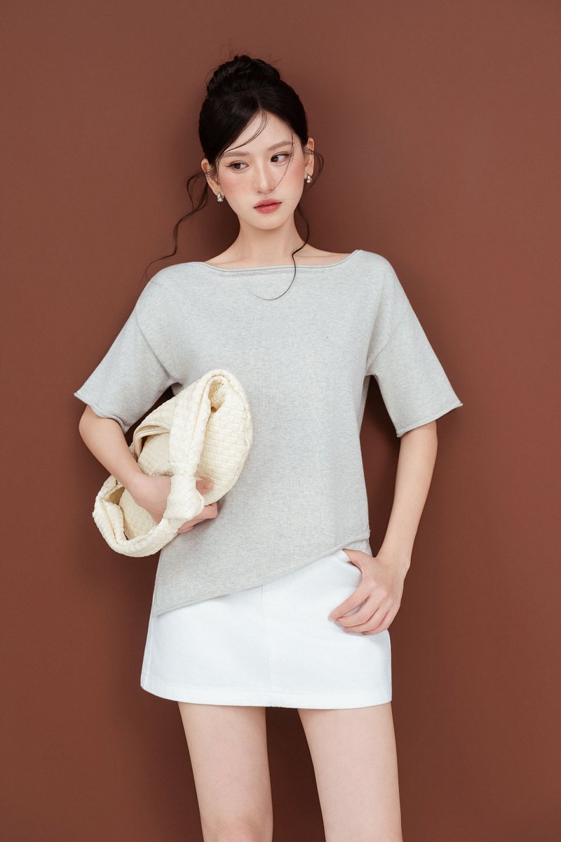 SOAH SLANTED KNIT TOP (LIGHT GREY)