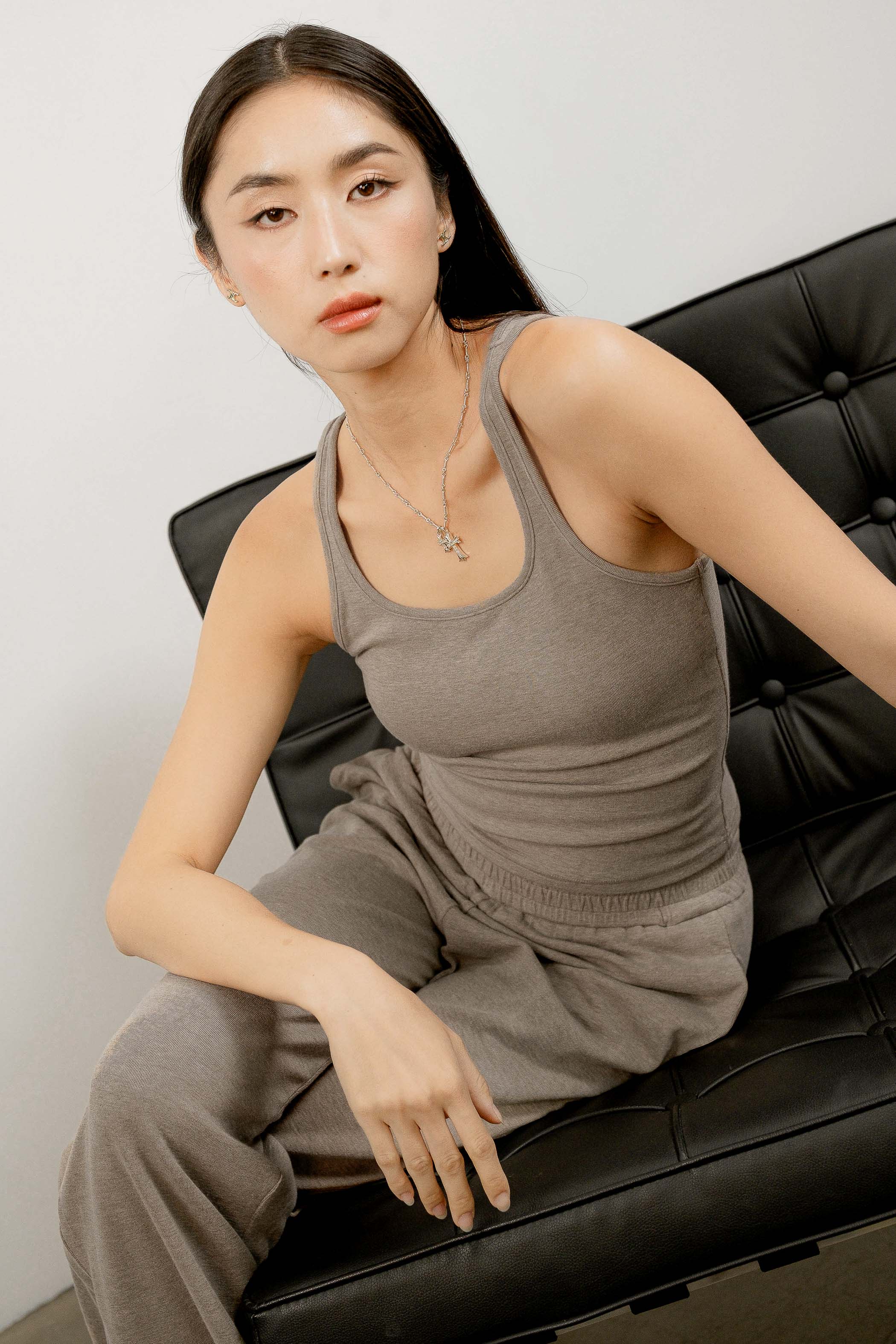 TRANSIT PADDED TOP (HEATHER BROWN)