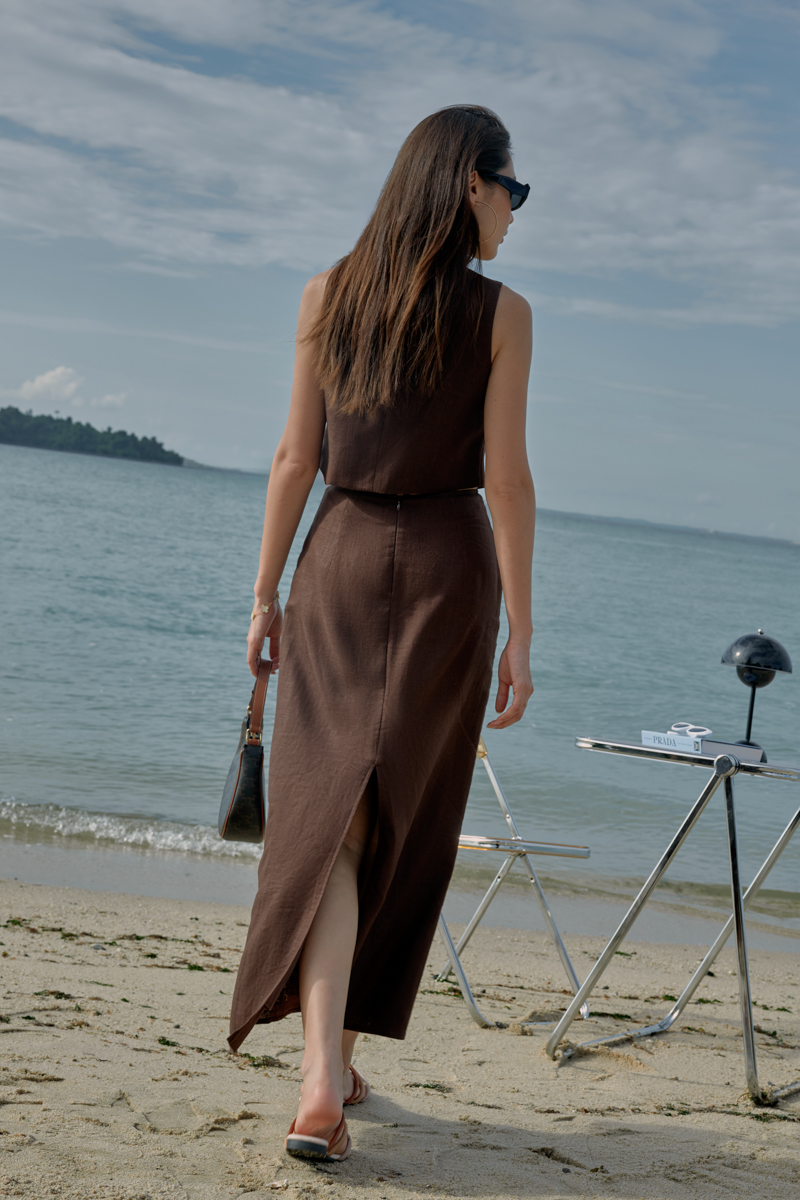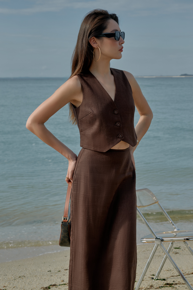 VICCI VEST LINEN TOP (BROWN)