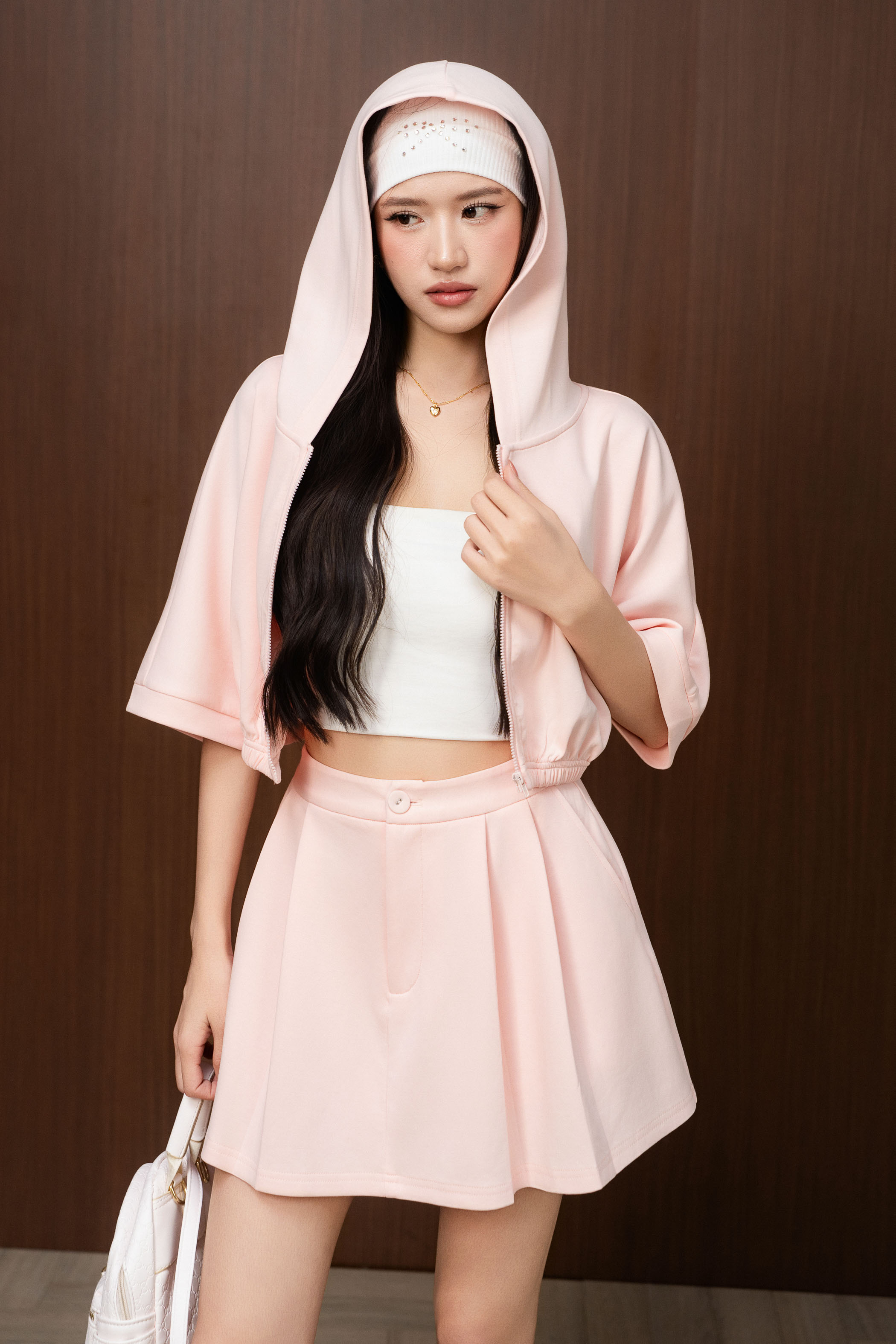 XYZ SHORT SLEEVE HOODIE (ICE PINK)